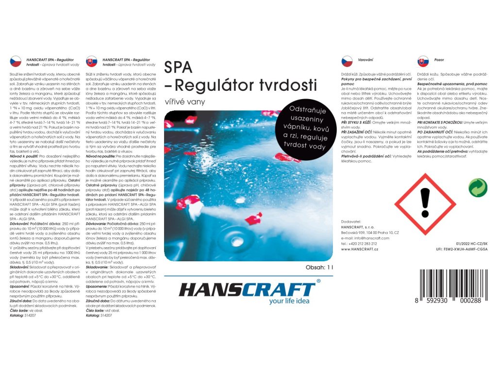 HANSCRAFT SPA - Regulátor tvrdosti